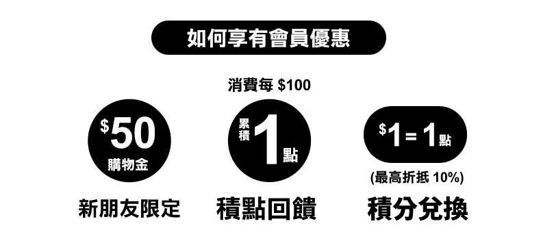 * 一般會員單筆交易金額滿 NT$100 元 (含稅) 可累積 1 點。