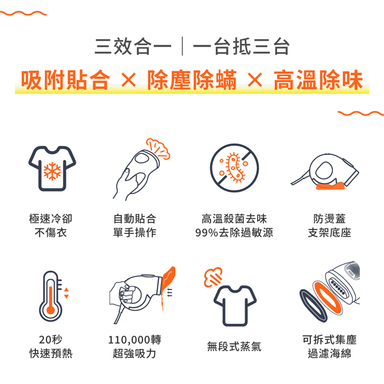 🔸三效合一 (吸附貼合、除塵除螨、高溫除味)
