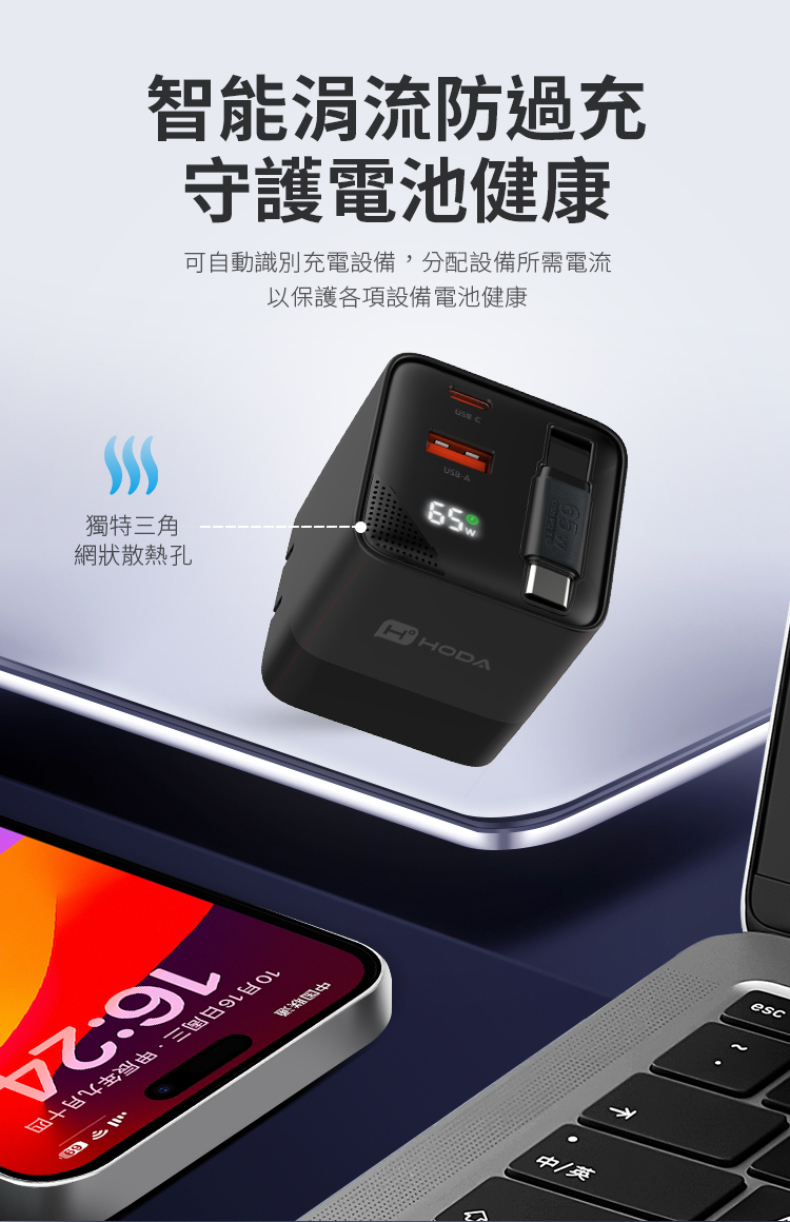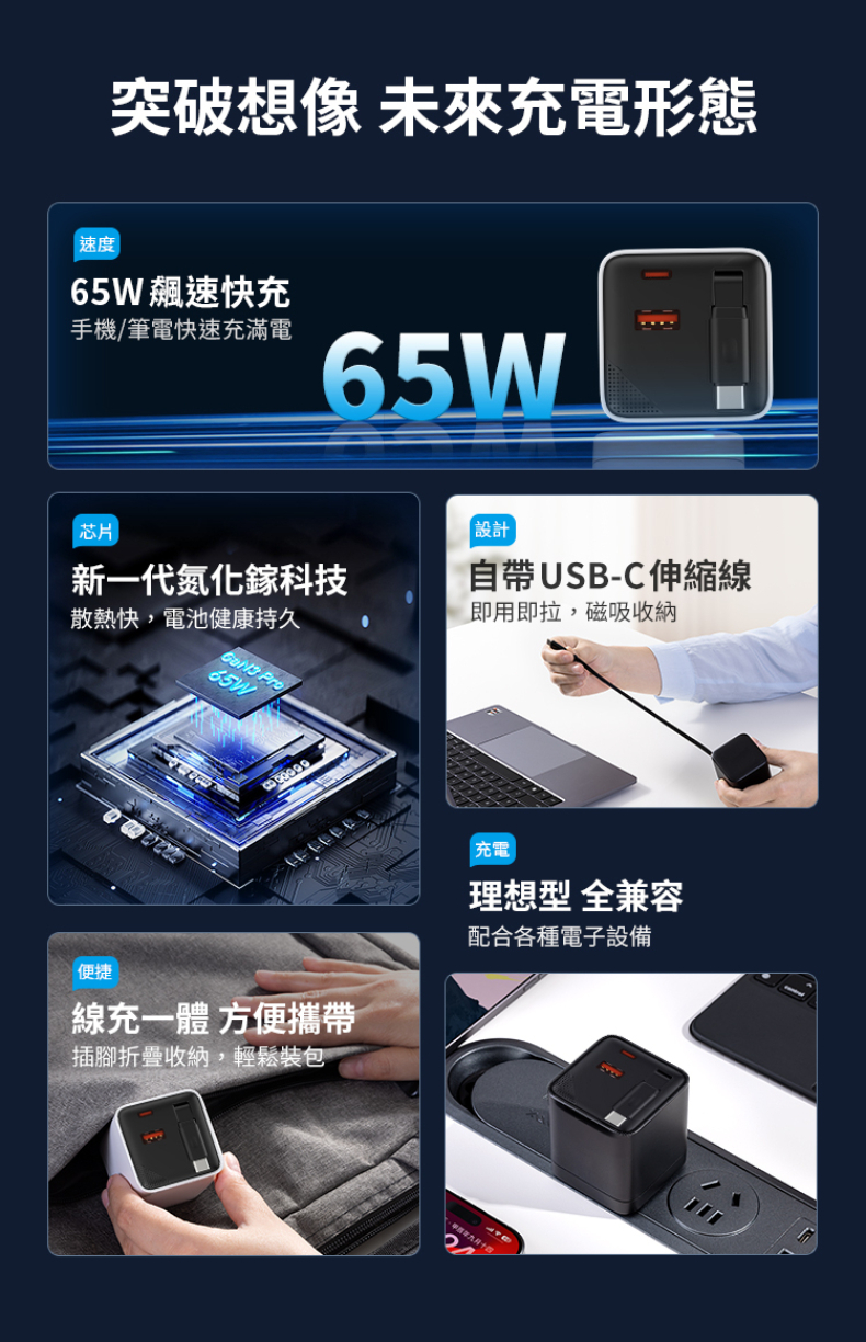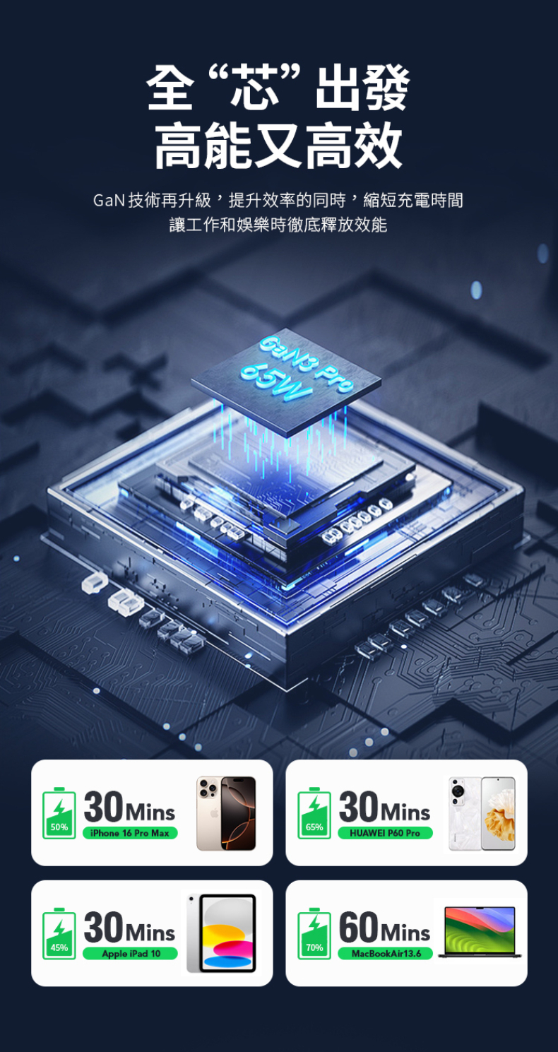 🔸採用新一代氮化鎵科技,成就 65W 高效能飆速快充