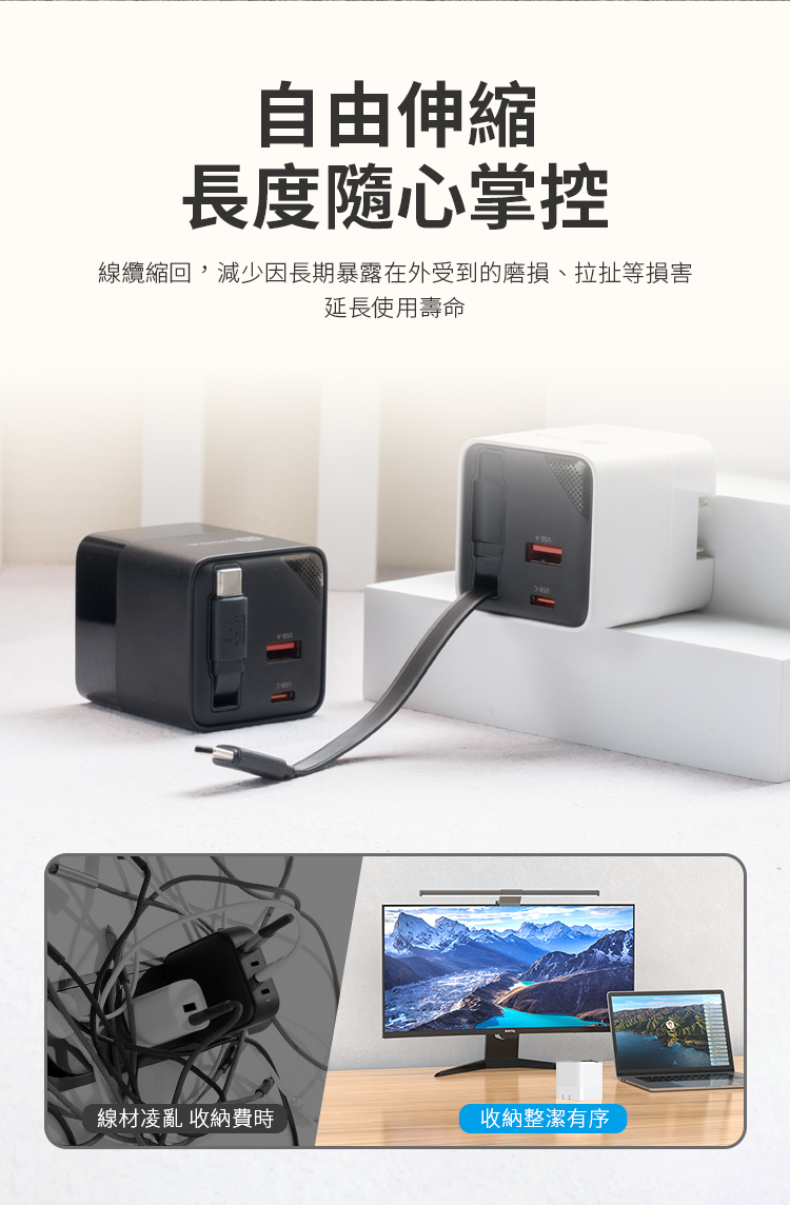 🔸首創自帶 USB-C 伸縮線,線充一體收放自如不糾結