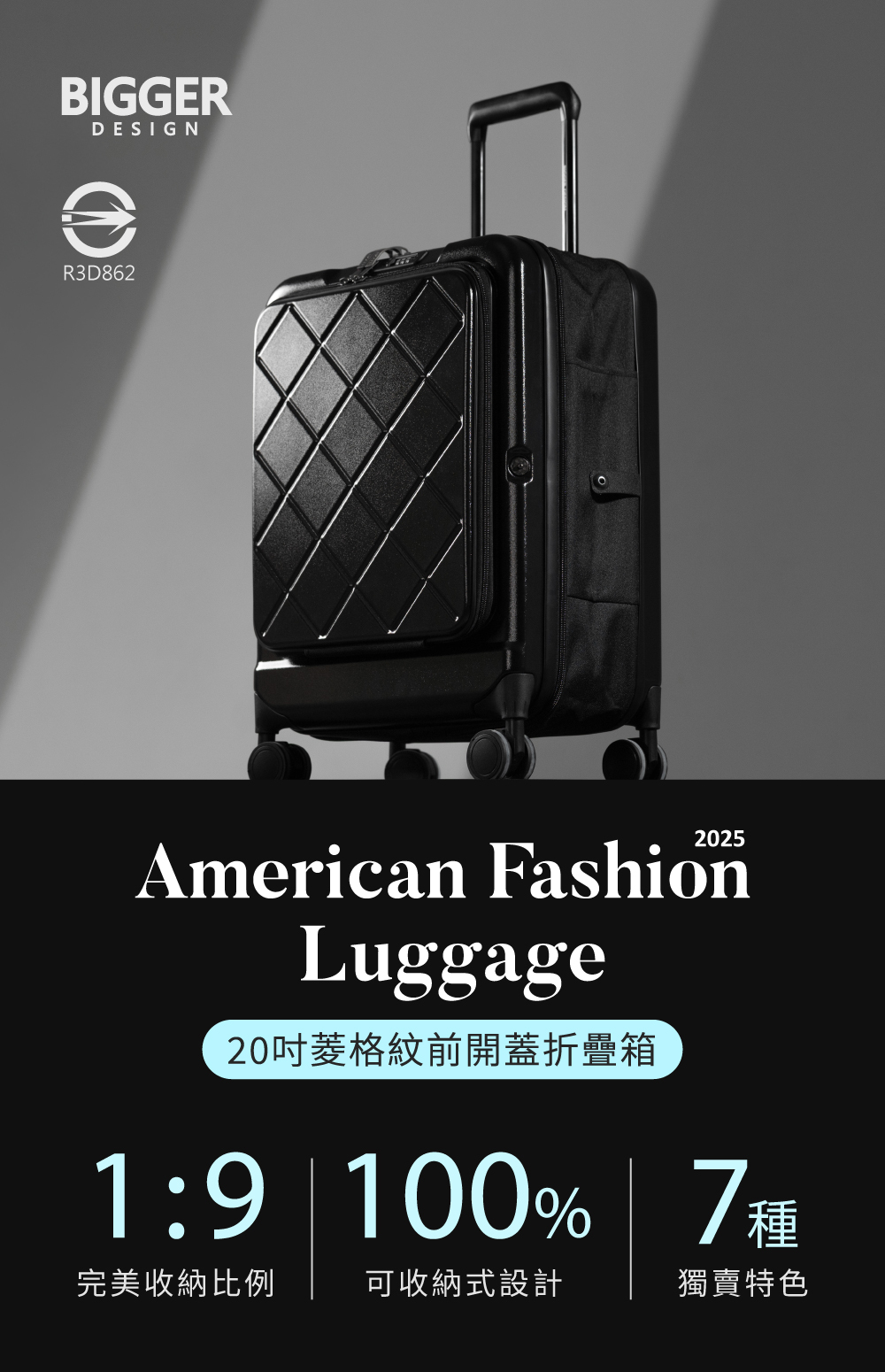 泡泡哥哥【BIGGER】20吋菱格紋前開摺疊箱 (共三色)