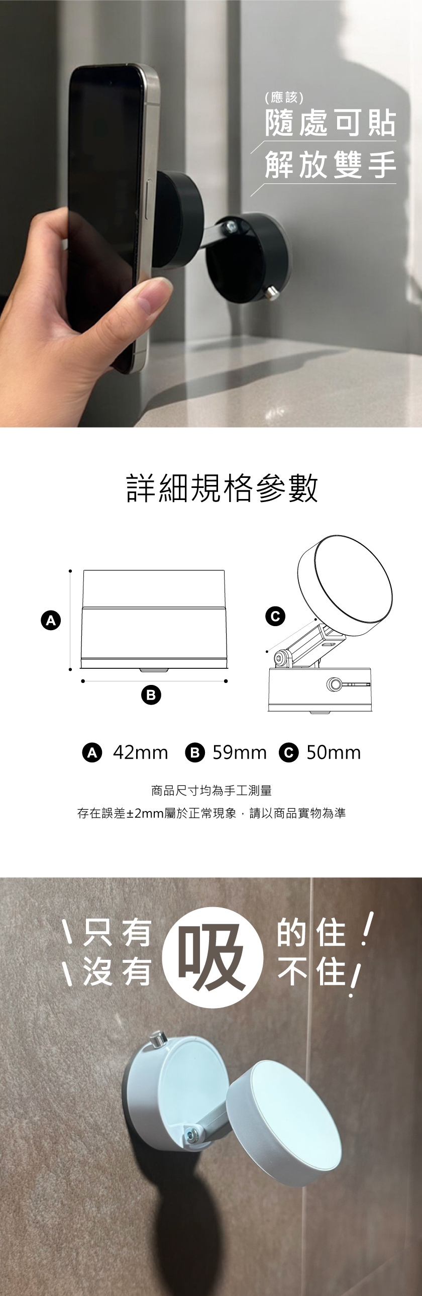 ✦ 吸力牢固,真空吸附手機